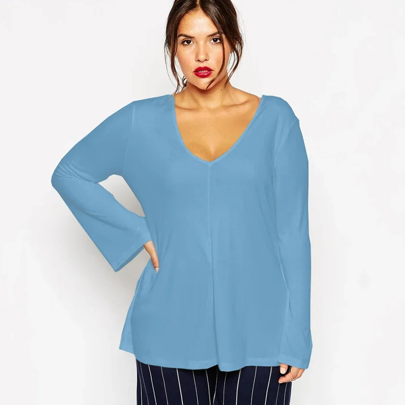 Plus Size V-neck Summer Spring Elegant Blouse Long Flare Sleeve Work Office Tunic Tops Plus Size Clothing For Women 6XL 7XL 8XL